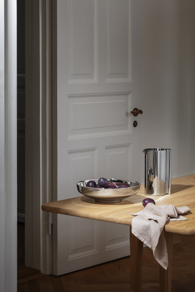 H κανάτα σχεδιασμένη από τον Δανό σχεδιαστή Henning Koppel (1918-1981) είχε αρχικά κατασκευαστεί από πορσελάνη. Επανεκδόθηκε με επιτυχία για πρώτη φορά το 2023 σε ανοξείδωτο ατσάλι.